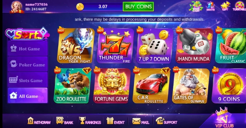 The platform uses a fair-play algorithm that ensures all players get equal chances of winning. Games like Teen Patti and Poker require skill and strategy, while slots and fishing games rely more on luck.